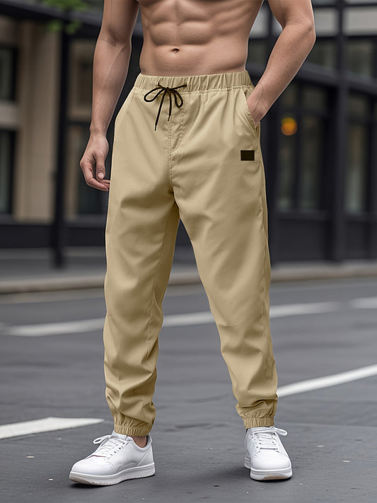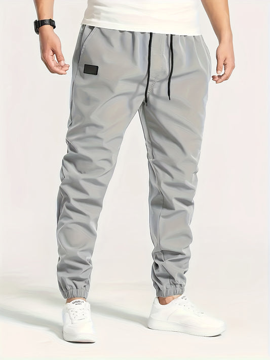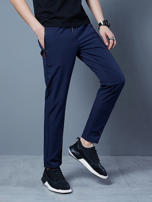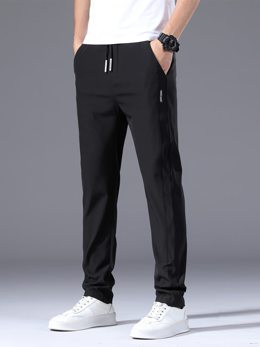 Men's Slim Fit Casual Drawstring Sports Pants, Summer Lightweight Trendy Elastic Quick-Dry Long Trousers, Stylish Comfortable Leisure Wear