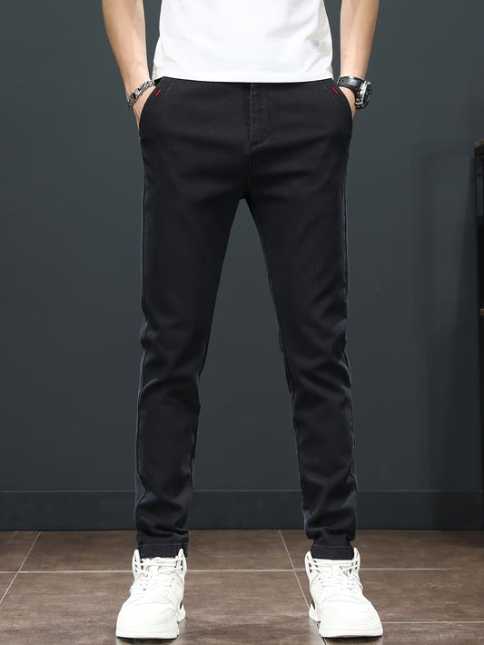 Men's Casual Solid Color Pants - Polyester, Machine Washable, Button Detail, Regular Fit for All Seasons