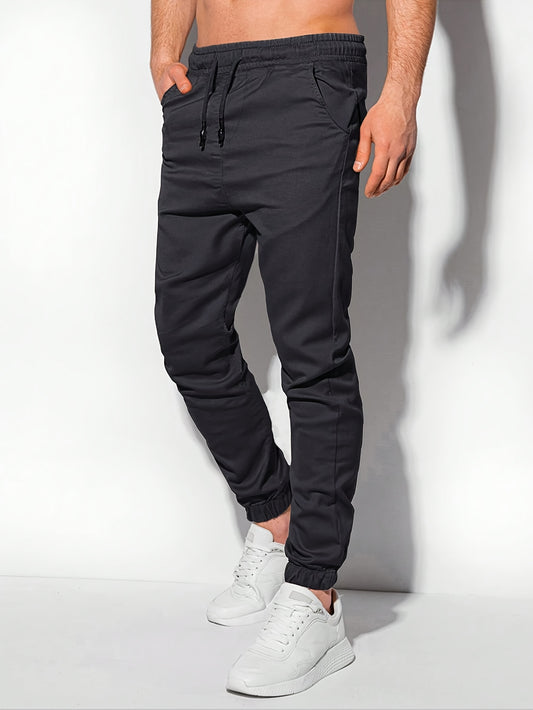 Classic Design Solid Color Regular Fit And Cuffed Sports Pants With Drawstring And Pockets, Versatile And Comfy Trousers For Men's Outdoors Sports Wear