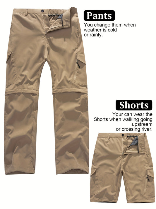 Men's Convertible Hiking Pants - Durable, Zip-Off Cargo Trousers for Fishing & Running, Casual Outdoor Wear with Pockets