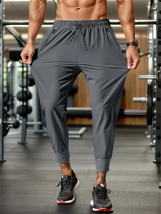 Men'S Athletic Stretch Pants with Adjustable Drawstring Waist, Featuring Zippered Pockets And Solid Color, Quick-Dry Joggers, Perfect for Fitness And Running Workouts.
