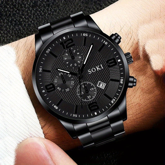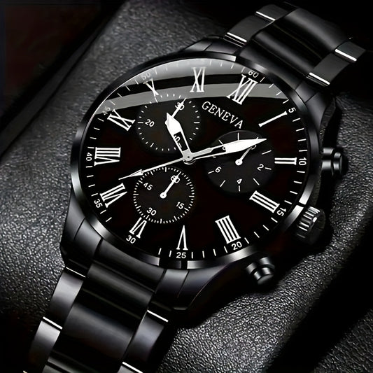 1pc Men'S Fashionable Business Quartz Watch with Black Dial, Stainless Steel Band & Alloy Case - Ideal Gift for Father, Husband, or Friend - Everyday Wearable Timepiece, Formal Accessory | Sleek Black Watch | Alloy Case Watch