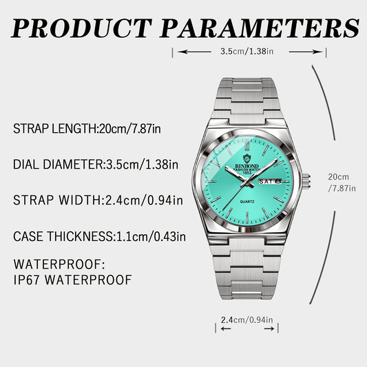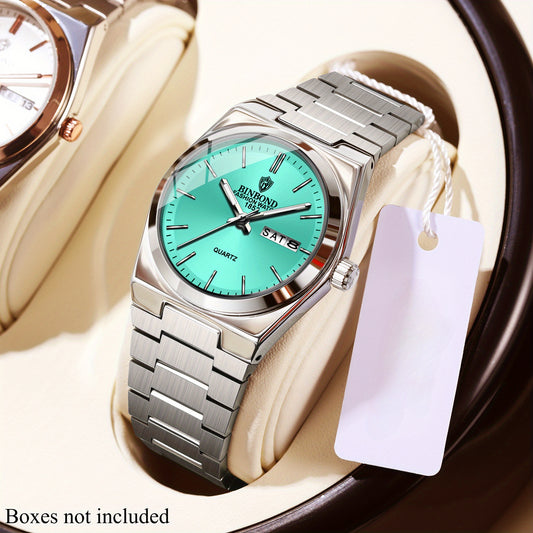 BINBOND Women's Elegant Quartz Watch, Stainless Steel Band, Aqua Green Dial, Date Display, IP67 Rated, Zinc Alloy Case, Perfect for Business or Casual Wear, Casual Wristwatch | Luxury Fashion Accessory | Sophisticated Aesthet