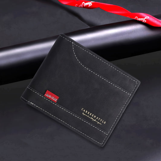 Men's Vintage-Style Black Faux Leather Wallet with Zipper - Multiple Card Slots, Multi-Functional ID Holder
