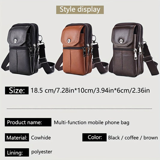 1pc Genuine Leather Cowhide Men's Waist Bag, Multi-Functional Zippered Phone Pouch with Adjustable Strap and Spacious Compartments for Work & Daily Use, Casual Style Top Layer Leather Fanny Pack