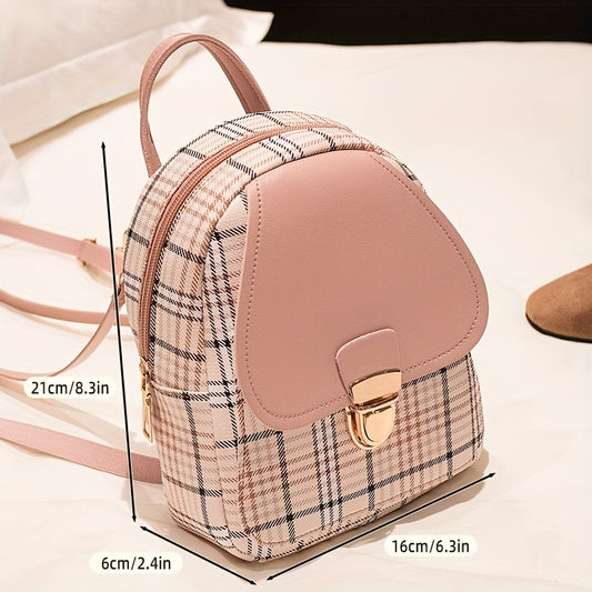 Adjustable Strap Grid Backpack, Cute Backpack, Zipper Casual Shoulder Bag, Card Wallet, Casual Phone Pouch, Leisure Camera Bag, Coin Purse, Key Pouch, Shoulder Bag, Crossbody Bag, Convertible Backpack.