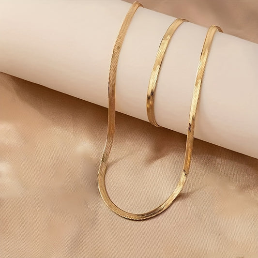 Set Of 2 Fashionable Classic Simple Flat Snake Bone Chain, Ladies' Unique Snake Bone Chain Necklace And Bracelet Set.