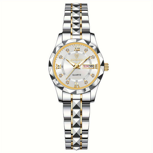 Stainless Steel Women's Luxury Quartz Watch with Date Display, Luminous Hands & High Quality IPX7 - Elegant Casual & Formal Wear, Perfect Gift for Birthdays, Valentine's Day