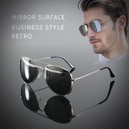 1 Pair of Men's Silvery Reflective Metal Oval Double Beam Retro Mature Personality and Casual Fashion Glasses