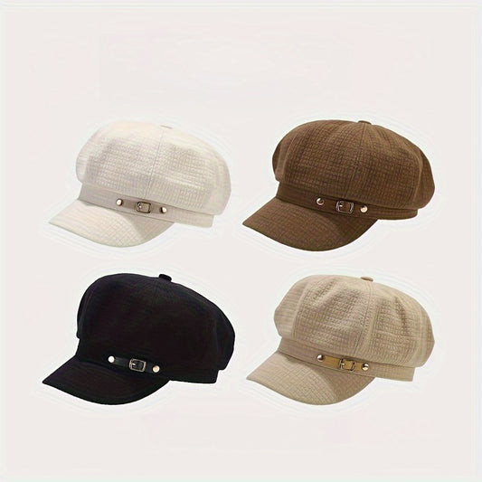 1pc Women's Octagonal Beret Hat with Adjustable Strap & Metallic Buckle - Wide Brim, 100% Polyester, Hand Wash Only, Spring/Summer Fashion Accessory for Outdoor Casual (Black/Brown/Beige), Hat, Stylish Face Covering, Elegant