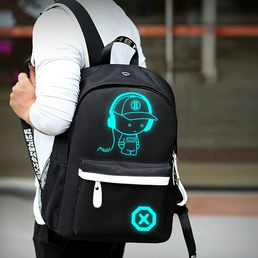 Glow-in-the-Dark Men's Backpack - Stylish & Lightweight, Large Capacity Oxford Fabric Daypack with USB Charging Port for Daily Commute, Campus, Cartoon, High School