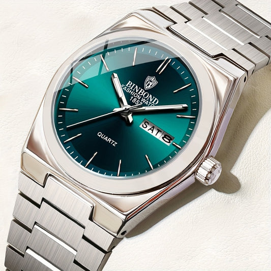 POEDAGAR Men's Luxury Business Quartz Watch - Luminous with Calendar Feature, Stainless Steel Band