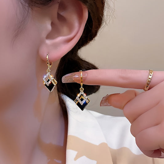 Elegant Vintage-Inspired Geometric Rhombus Drop Earrings with Crystal Accents, Zinc Alloy Dangle Earrings with Copper Ear Needle, Suitable for Daily and Party Wear - Pair