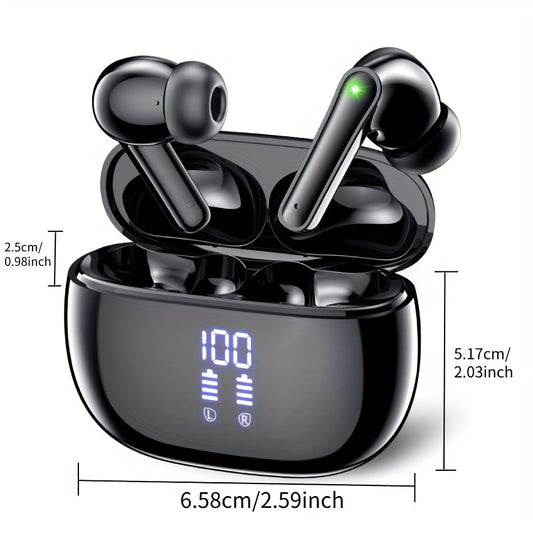 Wireless Earbuds with Touch Control, Built-in Noise Reduction Mic, Type-C Charging Case, 15Hr Playtime, 2Hr Quick Charge, USB Charging, 380mAh Battery, with LED Power Display, for Sports, Adult, Compatible with Cellphones