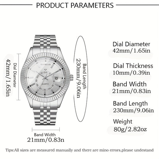 KASRLUO Men's Stainless Steel Watch with Calendar - Business Style, Quartz Movement, Round Dial, Black Faux Leather Strap, Date Display, Elegant Design for Young Professionals, Formal Accessory | Sophisticated Style | Precisi