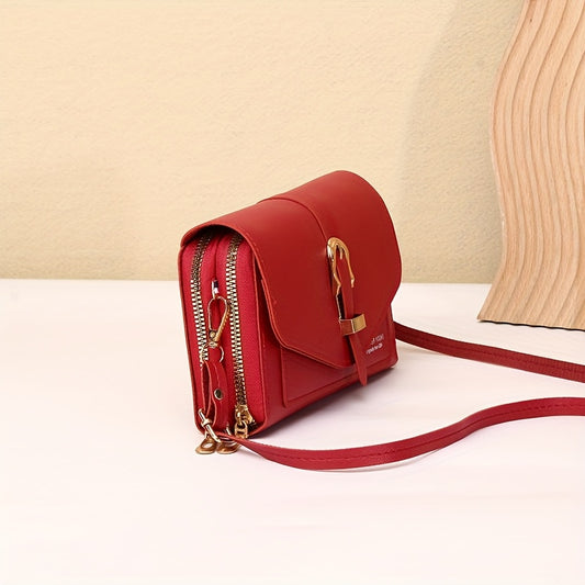 Women'S Stylish Crossbody Bag - a Chic Solid Color Shoulder Bag Featuring a Twist Lock Closure Design, Adjustable Strap with Golden Accents, Available in Patterns, And Comes in Black, Red, Pink, Brown