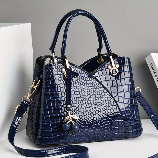 New 2025 Fashion Embossed Crocodile Pattern Women's Handbag, Stylish Glossy Light Luxury Mom Bag