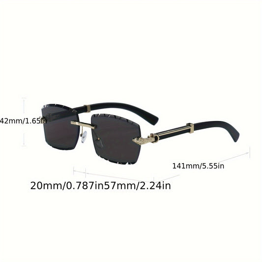 1 Pair Men's Frameless Rectangular Fashion Glasses with Golden Snake-Light Beige Metal Temples - Wide Fit (>139mm), Decorative Lens, Casual Fashion Accessories for Halloween/Christmas/Mother’s Day, Trendy Eyewear, Snake Pat