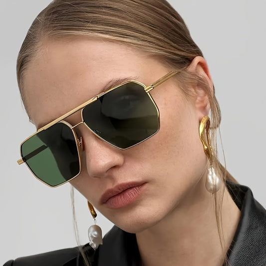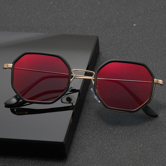 1 Pair of Men'S Geometric Copper Alloy Fashion Glasses with Red Lenses - Casual & Trendy, Ideal for, Daily Wear, and Holiday Gifts, Holiday Fashion Glasses|Sleek Metal Frame Glasses|Polycarbonate Lenses, Glasses