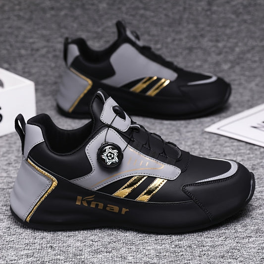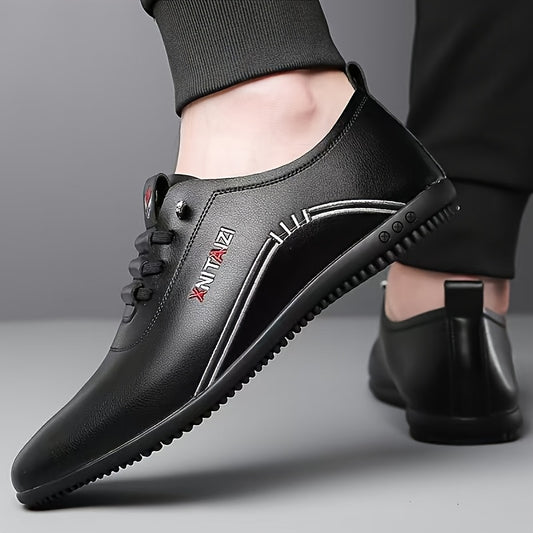 1 Pair of Men's Stylish Black & White Sneakers - Lace-Up Design, Round Toe, Rubber Sole, PU Upper, Perfect for Casual & Business Wear, Everyday Sneakers | Sporty Casual Shoes | Durable Footwear Construction
