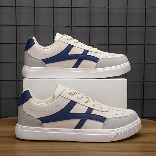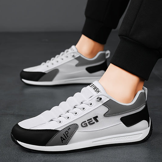 1 Pair Men's Breathable Low-Top Casual Sneakers - White & Black PU Upper with Rubber Sole, Lightweight Walking Shoes for Spring Summer Fall, Lace-Up Design & Fabric Lining, Spring Summer Footwear, Comfortable Fabric Lining
