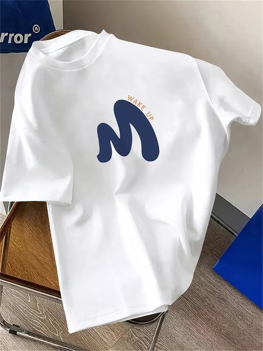 "WAKE UP" Graphic Tee - Comfortable Casual Brown Short Sleeve Crewneck T-Shirt with White Print, Summer Wear