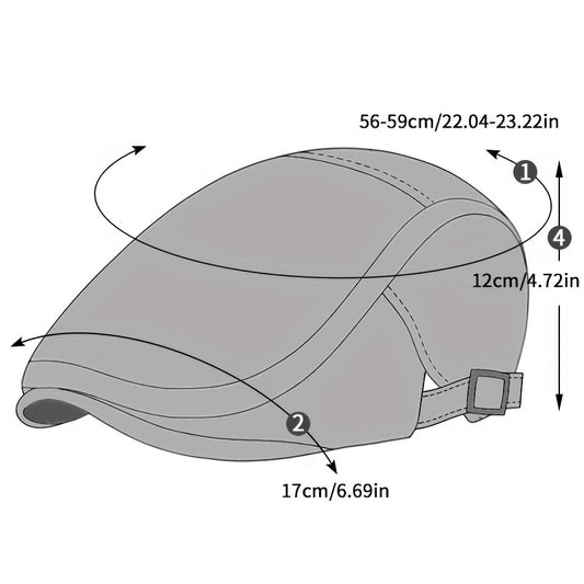 1 Men's Breathable Mesh Beret Hat - Casual Summer Style, 100% Polyester with Adjustable Faux Leather Strap for Comfort Fit