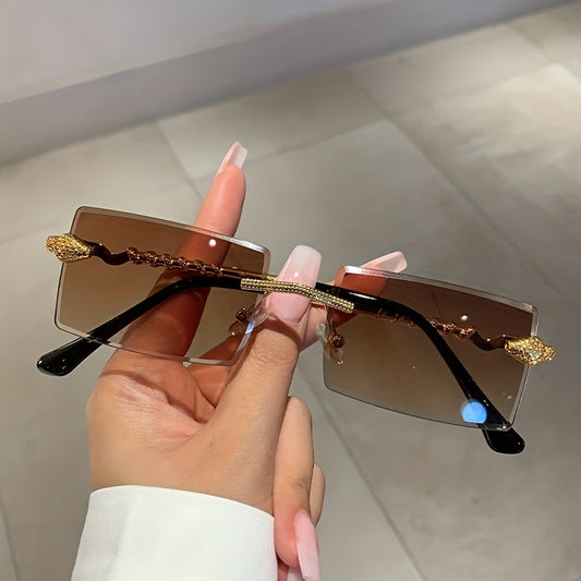 1 pair of ladies metal rectangular rimless snake pattern decoration glasses legs high quality leisure European and American hot style glasses, suitable for street shooting parties and parties to wear