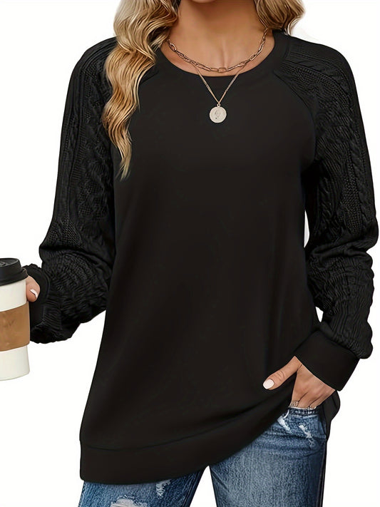 Women's Casual Brown Cable Knit Sweater - Long Sleeve, Round Neck, Stretchy Polyester Blend, Machine Washable, Cozy Clothing|Round Neck Top|Comfortable Texture