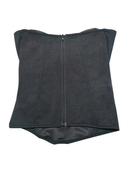 Elegant Off-Shoulder Corset Tank Top - Slim Fit, Fishbone Support, Solid Black, Stretchy Polyester Blend, Machine Washable, Women’s Fashion Essential