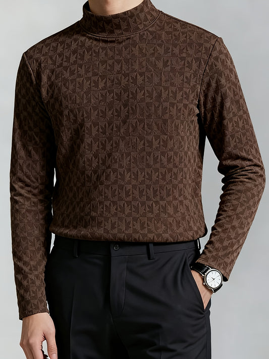 Men'S Long-Sleeve T-Shirt with a Half-High Collar, Casual Jacquard Base Layer for Outerwear, Stylish And High-Quality Top for Autumn And Winter
