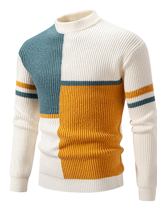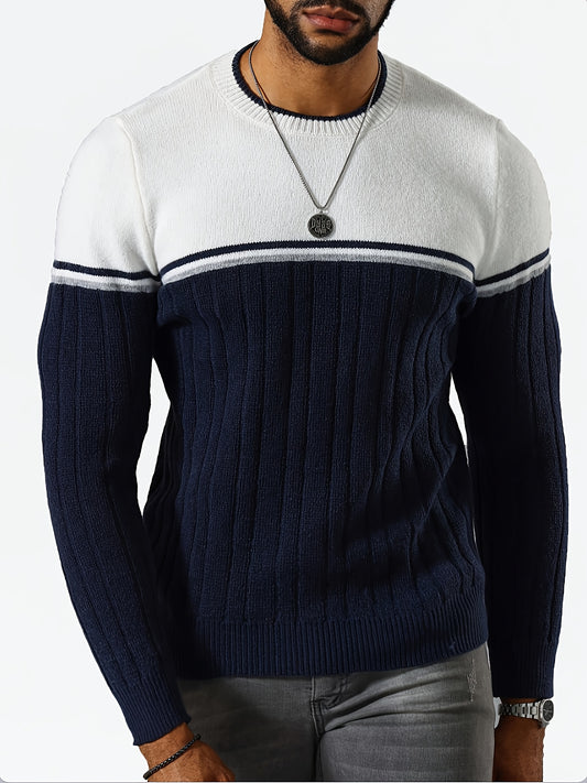 Men's Sweater with Color Block Design, Slim Fit, Crew Neck Pullover, Autumn/Winter Style