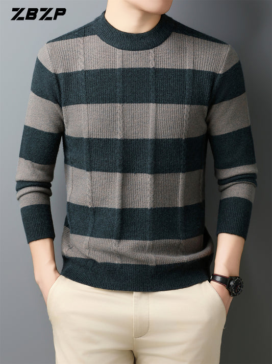 Men'S Solid Color Plaid Warm High-Neck Knitted Long-Sleeve Sweater for Casual Wear in Autumn And Winter