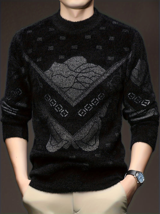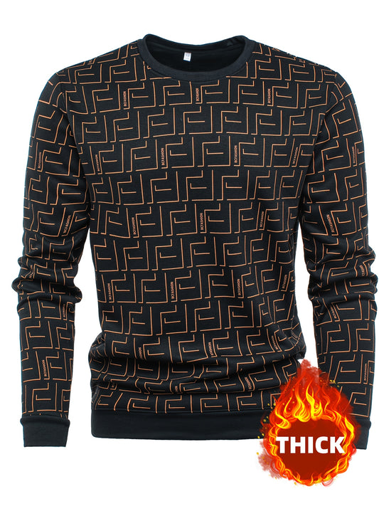 New Autumn And Winter Men'S Long-Sleeve Fleece Sweatshirt, Featuring a Geometric Pattern Design, Warm And Soft Stylish Round-Neck Sweatshirt, a Perfect Gift for Men to Keep Warm