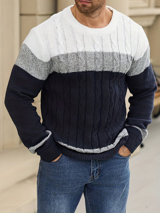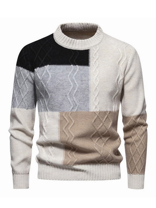 Men's Autumn/Winter Casual Color-Block Twist-Knit Pullover Sweater