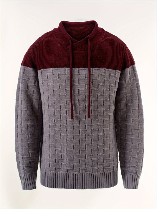 Men's Color Block Vintage Long Sleeve Sweater With Stand Collar, Soft And Comfortable Clothing For Fall And Winter