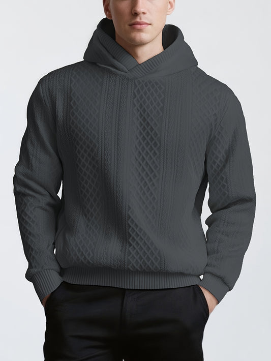 Men's Winter Warm Plaid Patchwork Sweater - Slim Fit Color Block Hooded Pullover with Patchwork Design, Machine Washable Cold Weather Sweaters for Outdoor Sports & Casual Wear (Autumn/Winter)