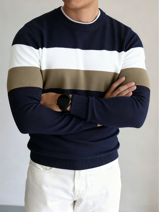 Autumn And Winter Men'S Color-Block Striped Round-Neck Sweater