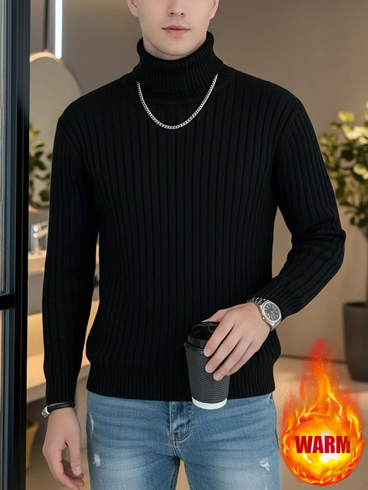 Men'S Solid Color Turtleneck Sweater, Highly Elastic, Stylish, Comfortable, And Warm Top, Suitable for Outdoor Wear in Autumn And Winter, Base Layer Sweater, Striped Knitted Turtleneck Sweater - Long Sleeve Pullover, Featurin