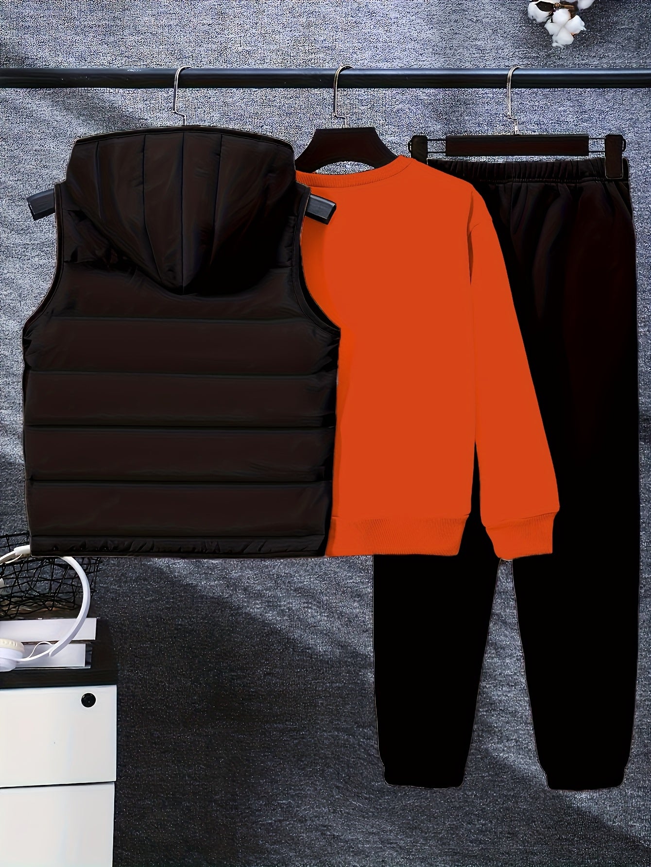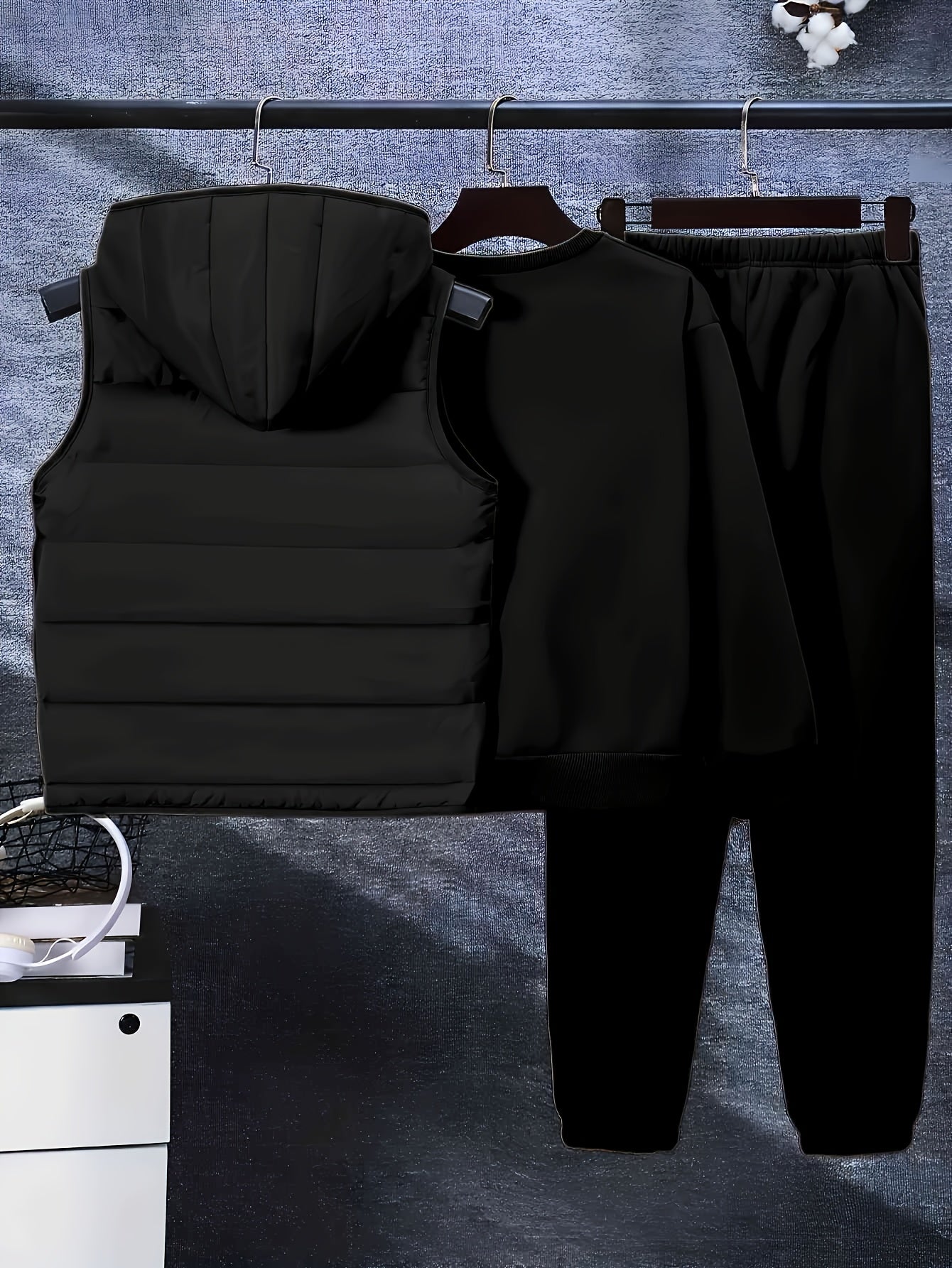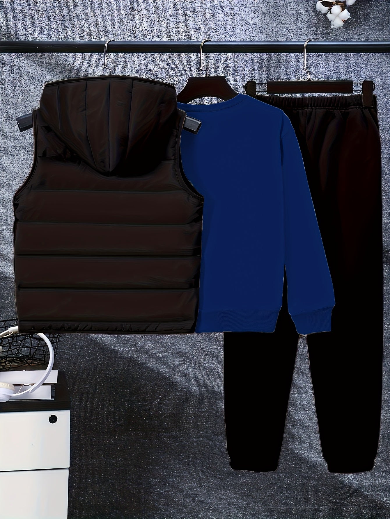 3pcs Boys' Winter Warm Uniform Set - NY Logo Lettered Jacket, Sweatshirt & Pants with Numbered Parch-Like Strips (8-12 Years) | Machine Washable 3pcs Outfit for, & Cold Weather | Non-Stretch Layered Clothing, Perfect for Outd