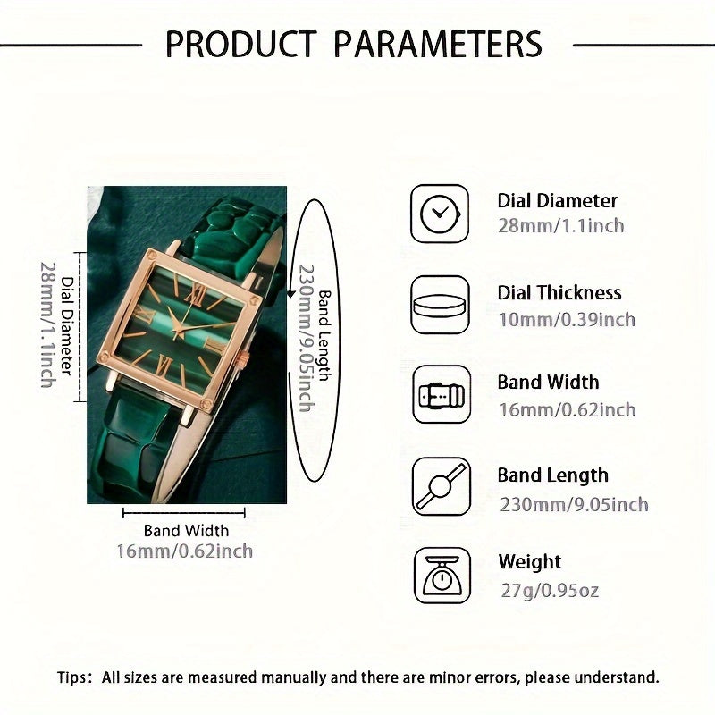 5pcs/Set Casual Simple Pointer Square Dial Women's Watch Set, PU Leather Strap Watch+4pcs Jewelry Set, A Selected Watch Set for Fashionable Ladies, Suitable for All Ladies