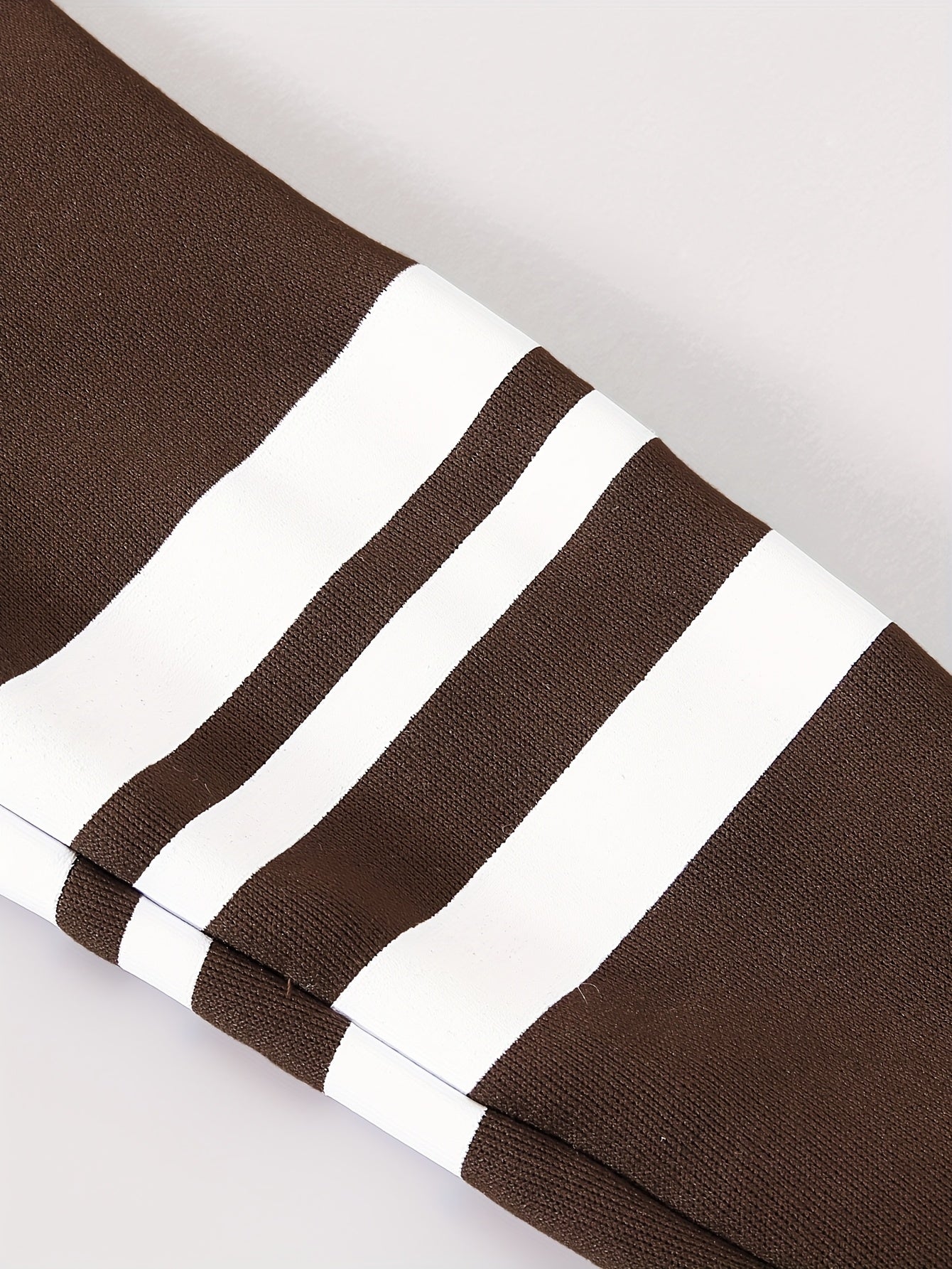 ' Autumn/Winter New Thickened Fleece-Lined Hooded Jacket with Striped Print on One Side, Warm and Stylish Zip-Up Sweatshirt Top + Solid Color Drawstring Straight Leg Pants, Fashionable Classic Versatile Casual Long Pants 2pcs