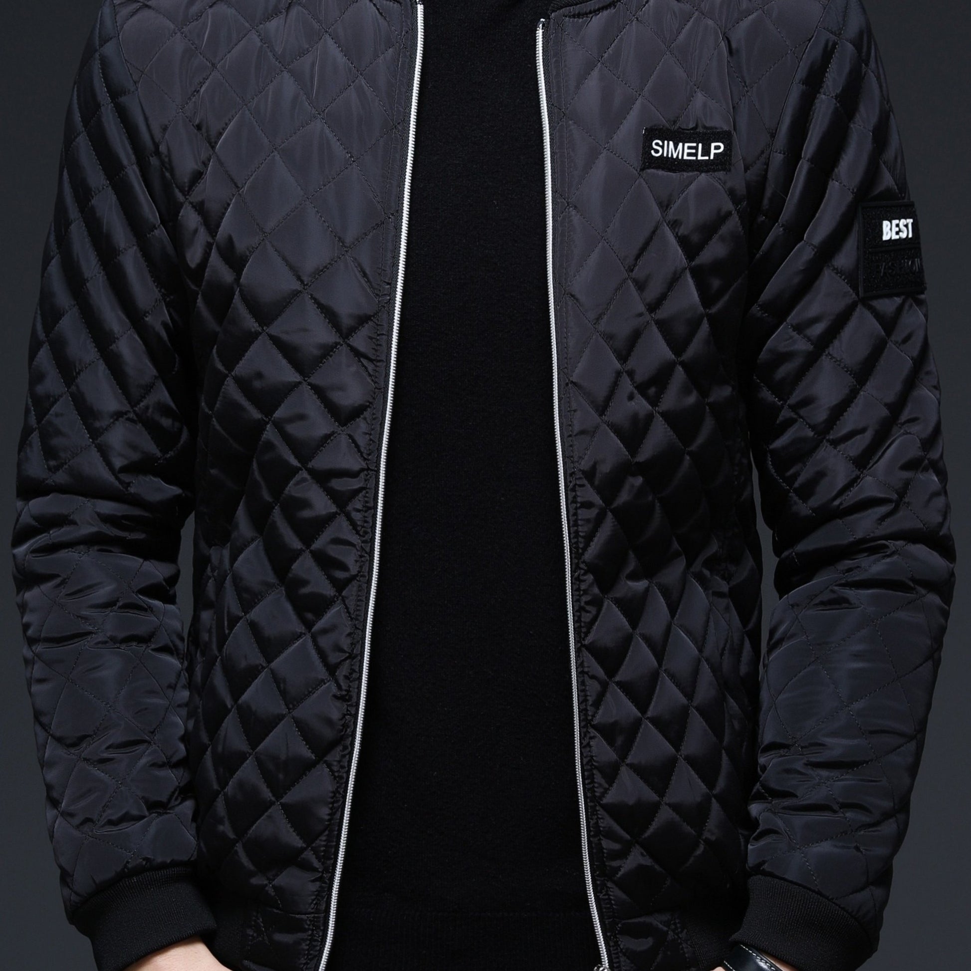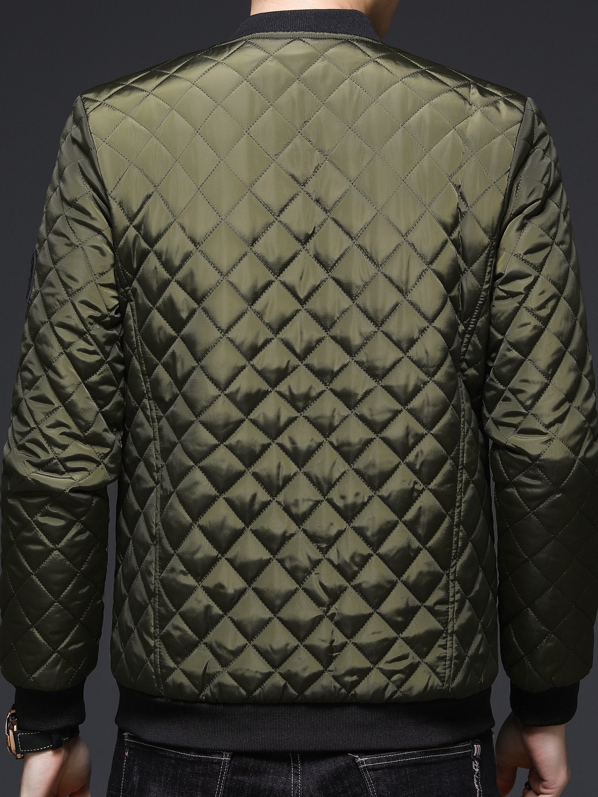 Men's Casual Quilted Zip Up Jacket, Chic Baseball Collar Jacket For Fall Winter