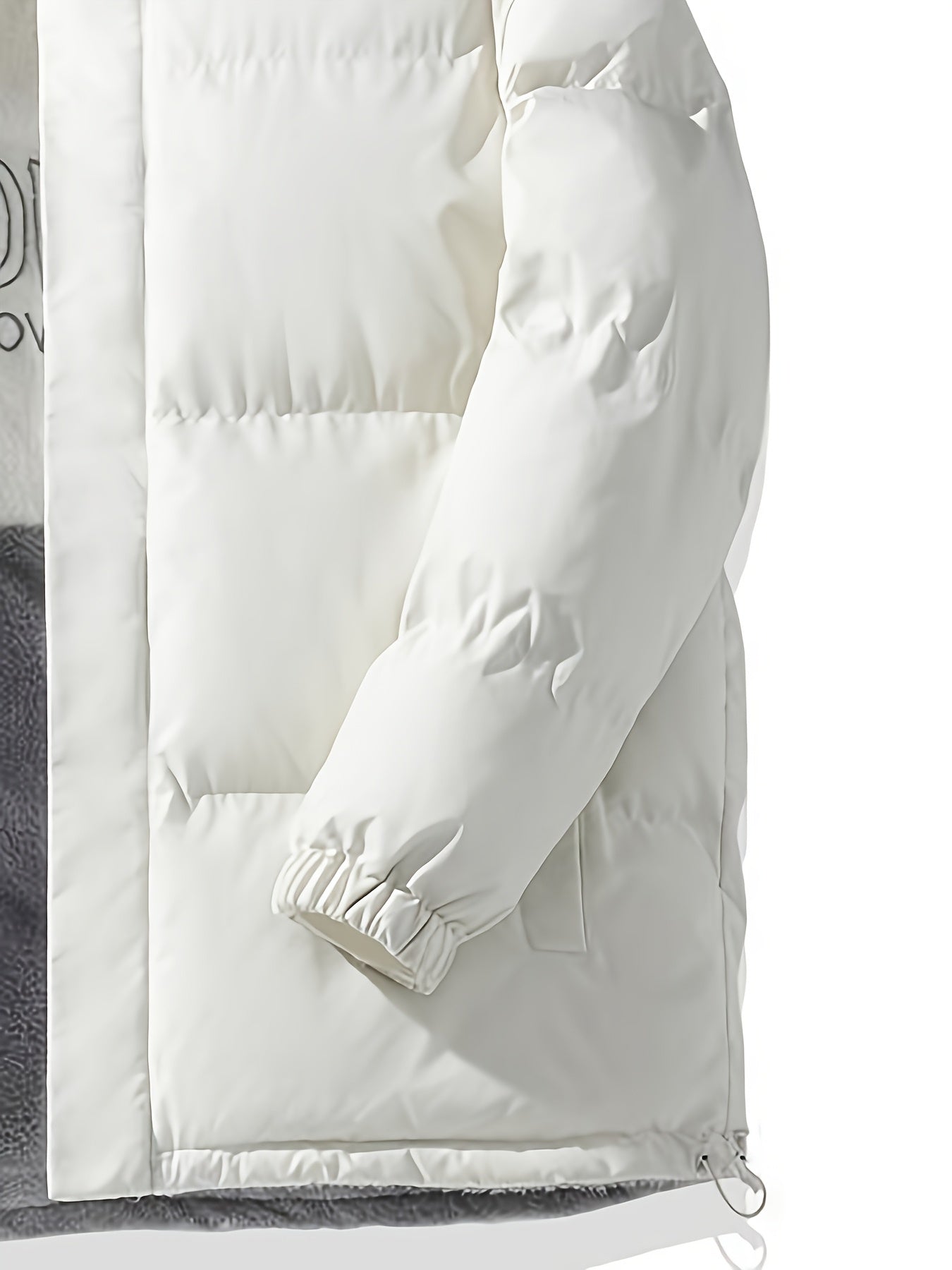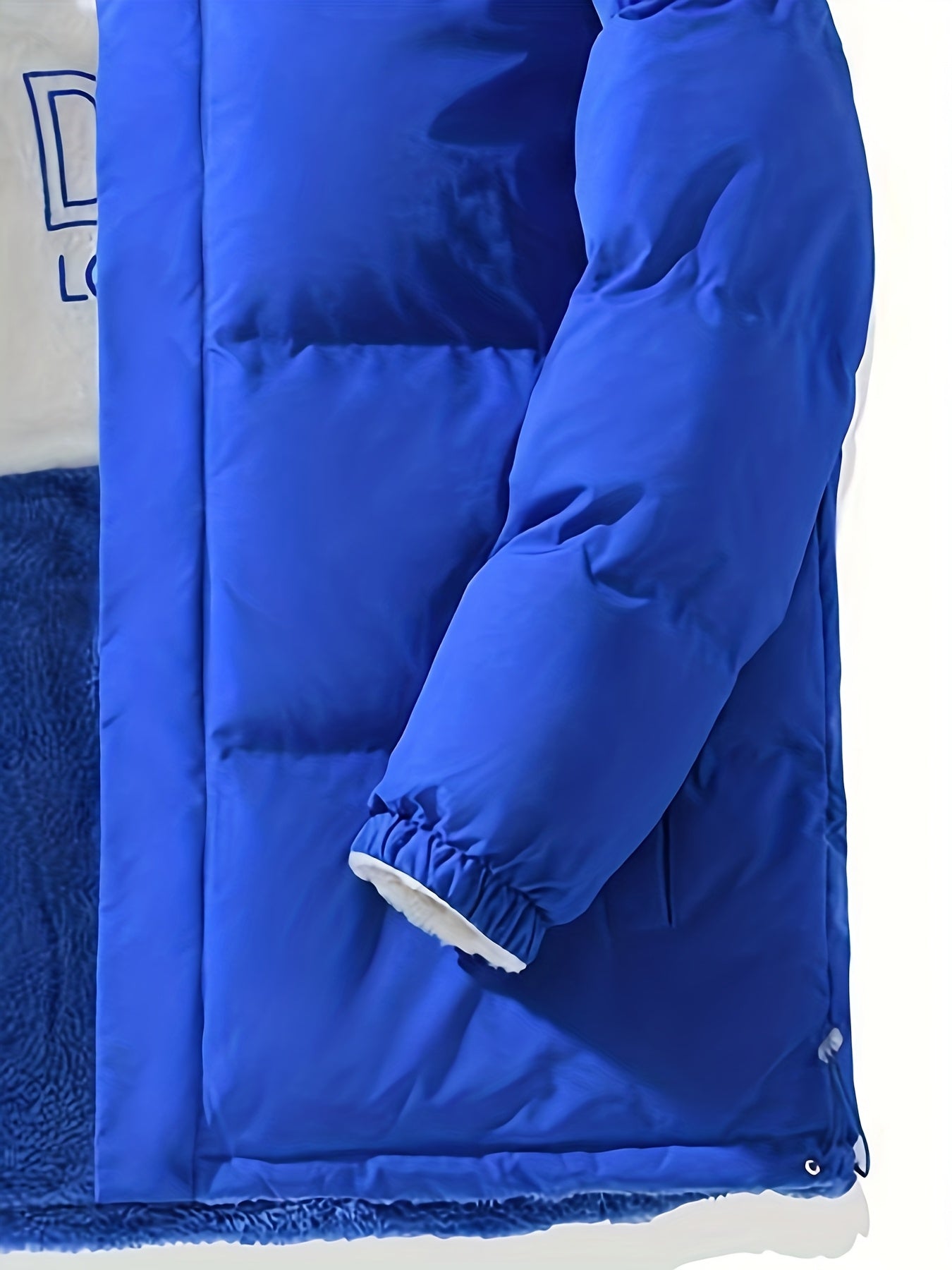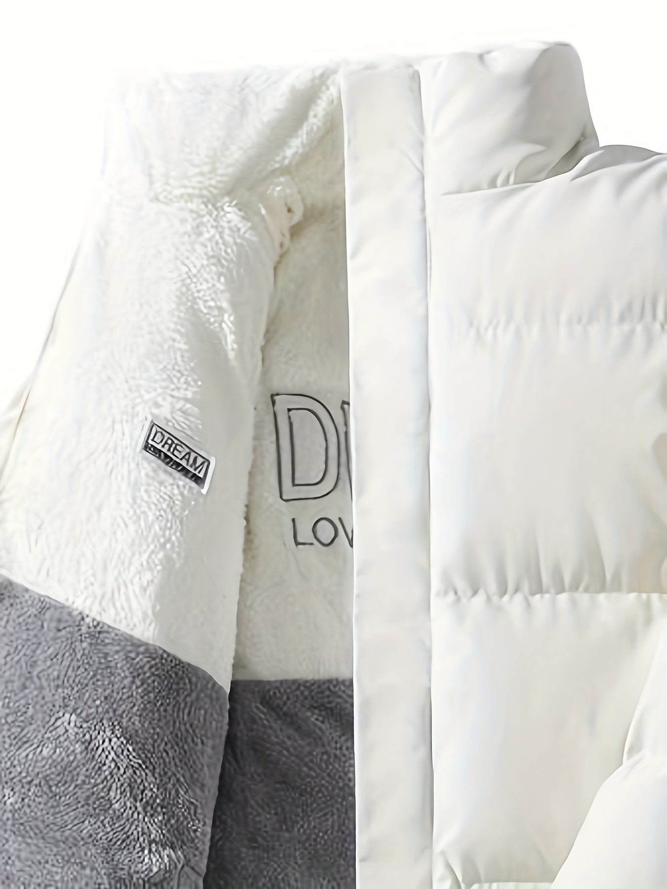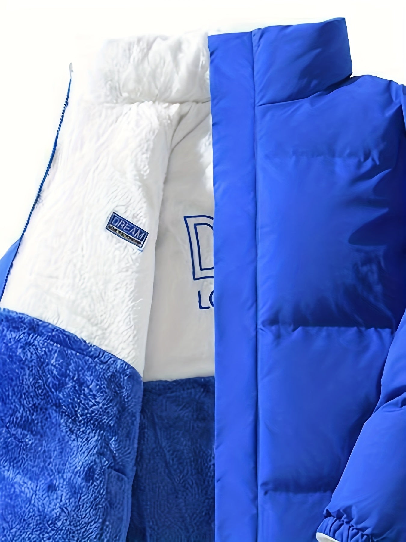 Men'S Double-Sided Fleece-Lined Thickened Jacket - Casual Stand Collar with Letter Print, Regular Fit, Pockets, Polyester Fill, Versatile for Fall/Winter, Winter Jacket