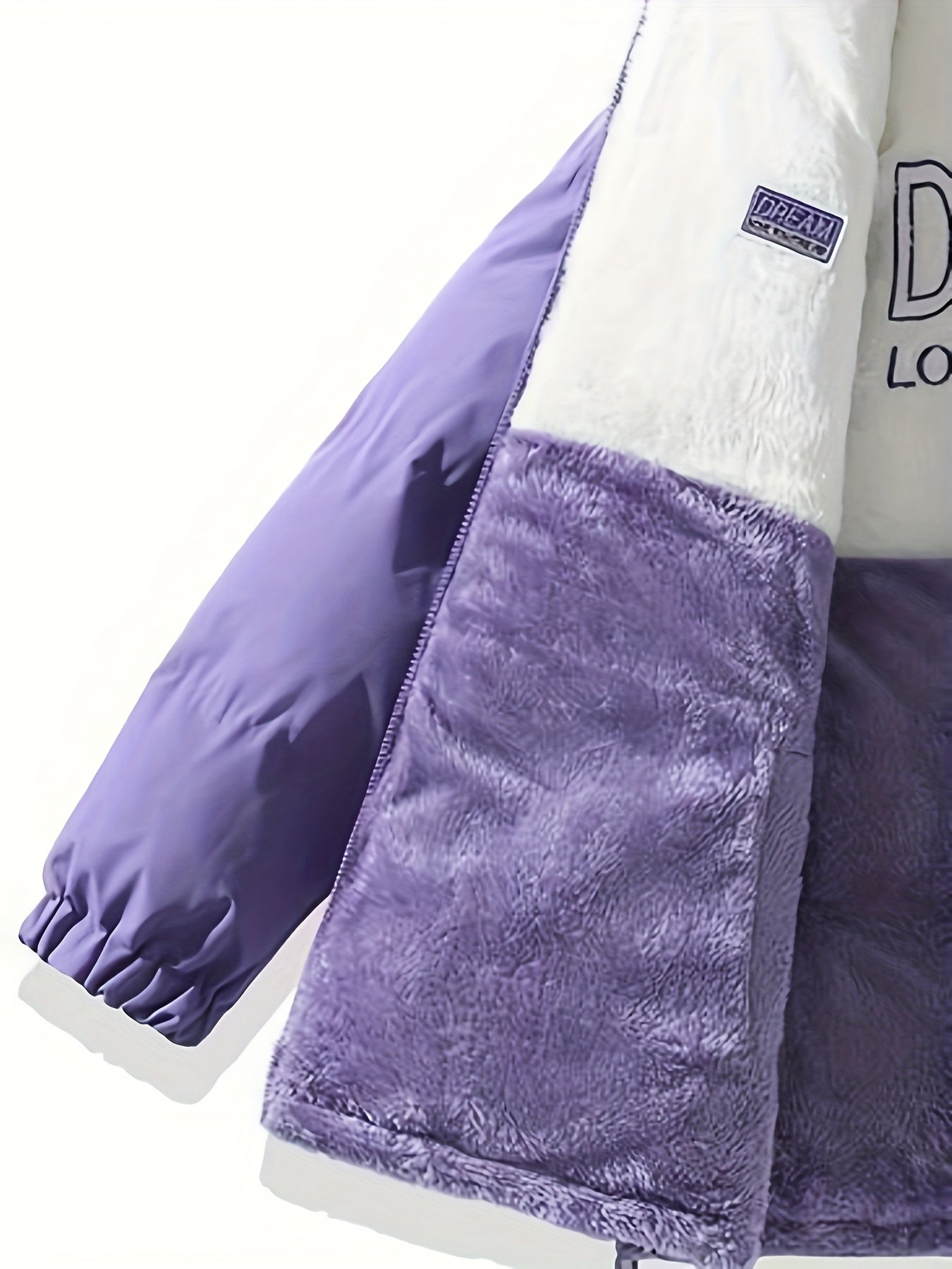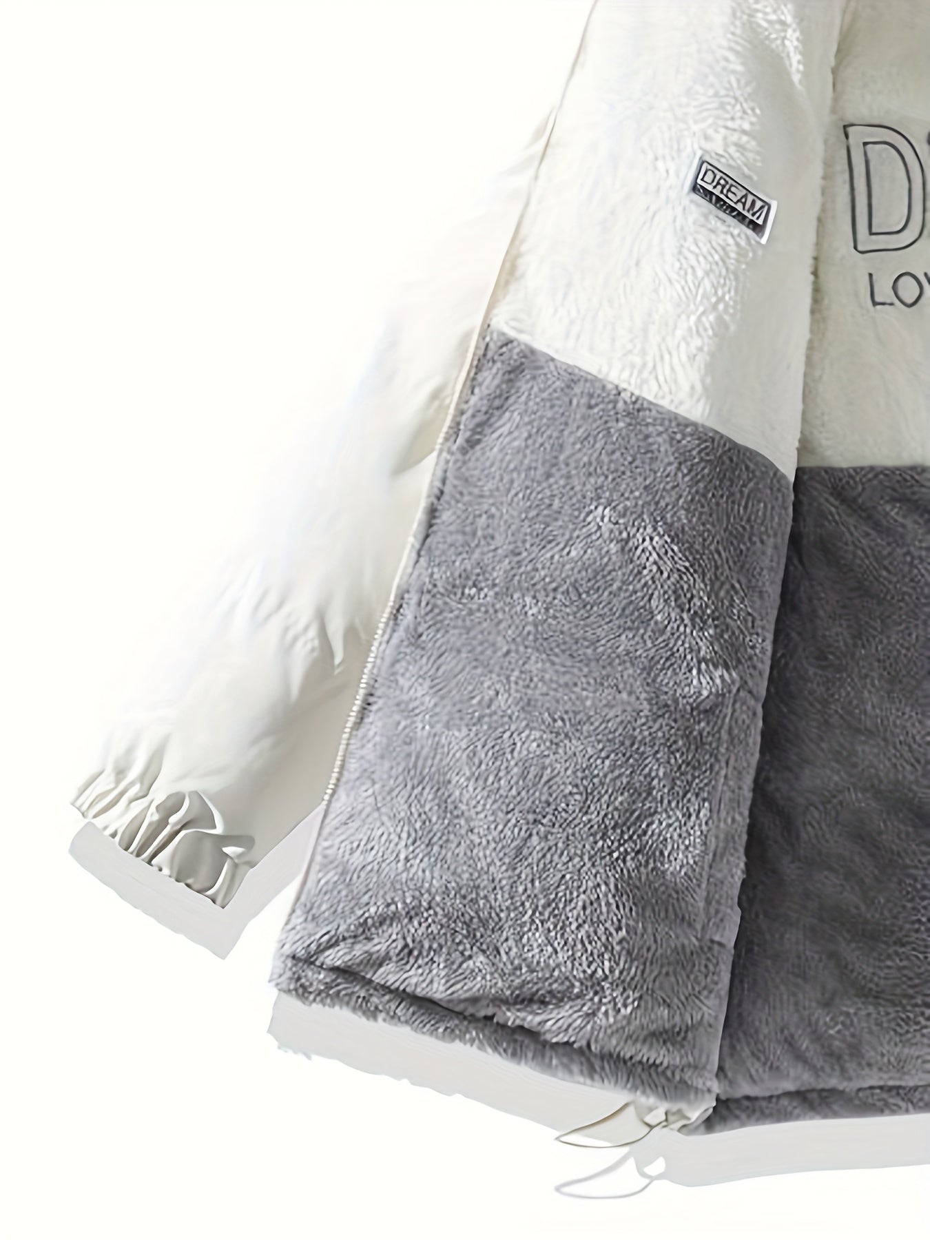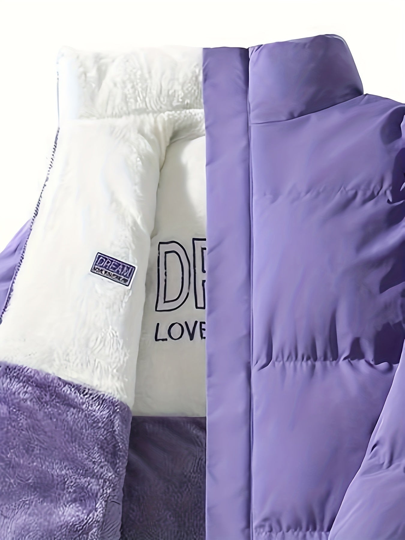 Men'S Double-Sided Fleece-Lined Thickened Jacket - Casual Stand Collar with Letter Print, Regular Fit, Pockets, Polyester Fill, Versatile for Fall/Winter, Winter Jacket
