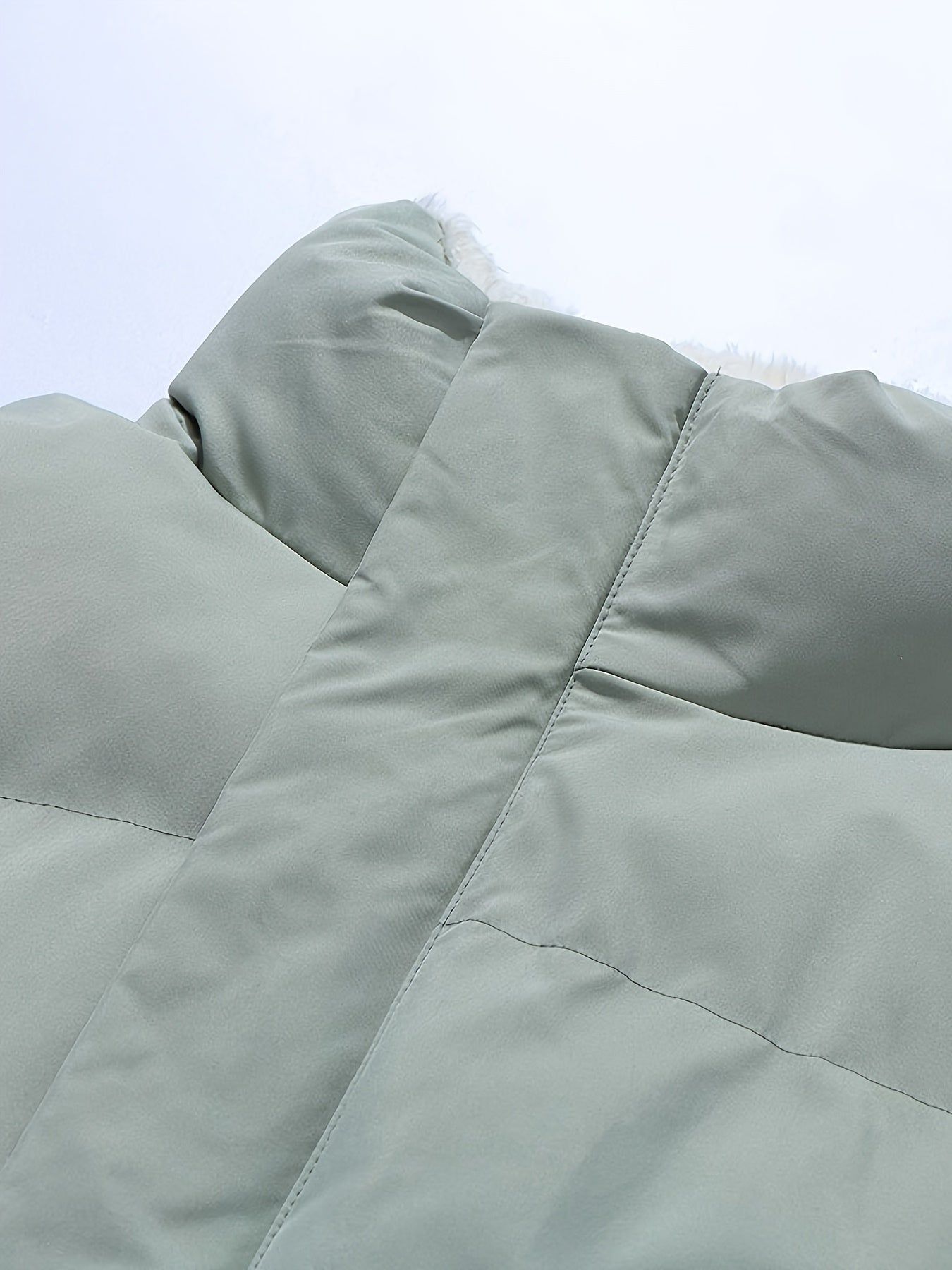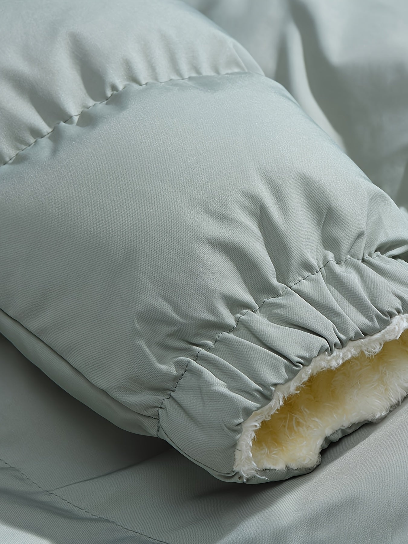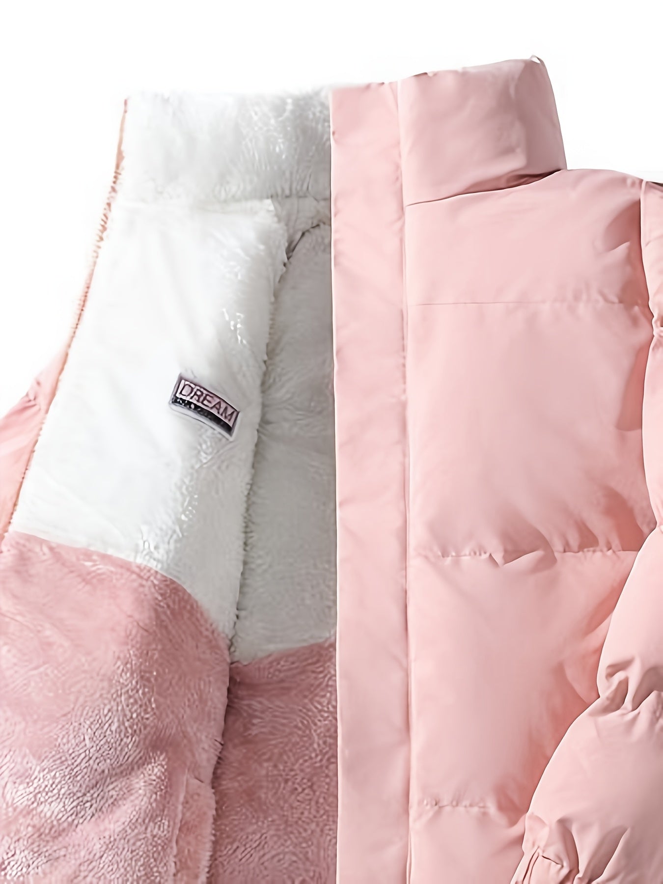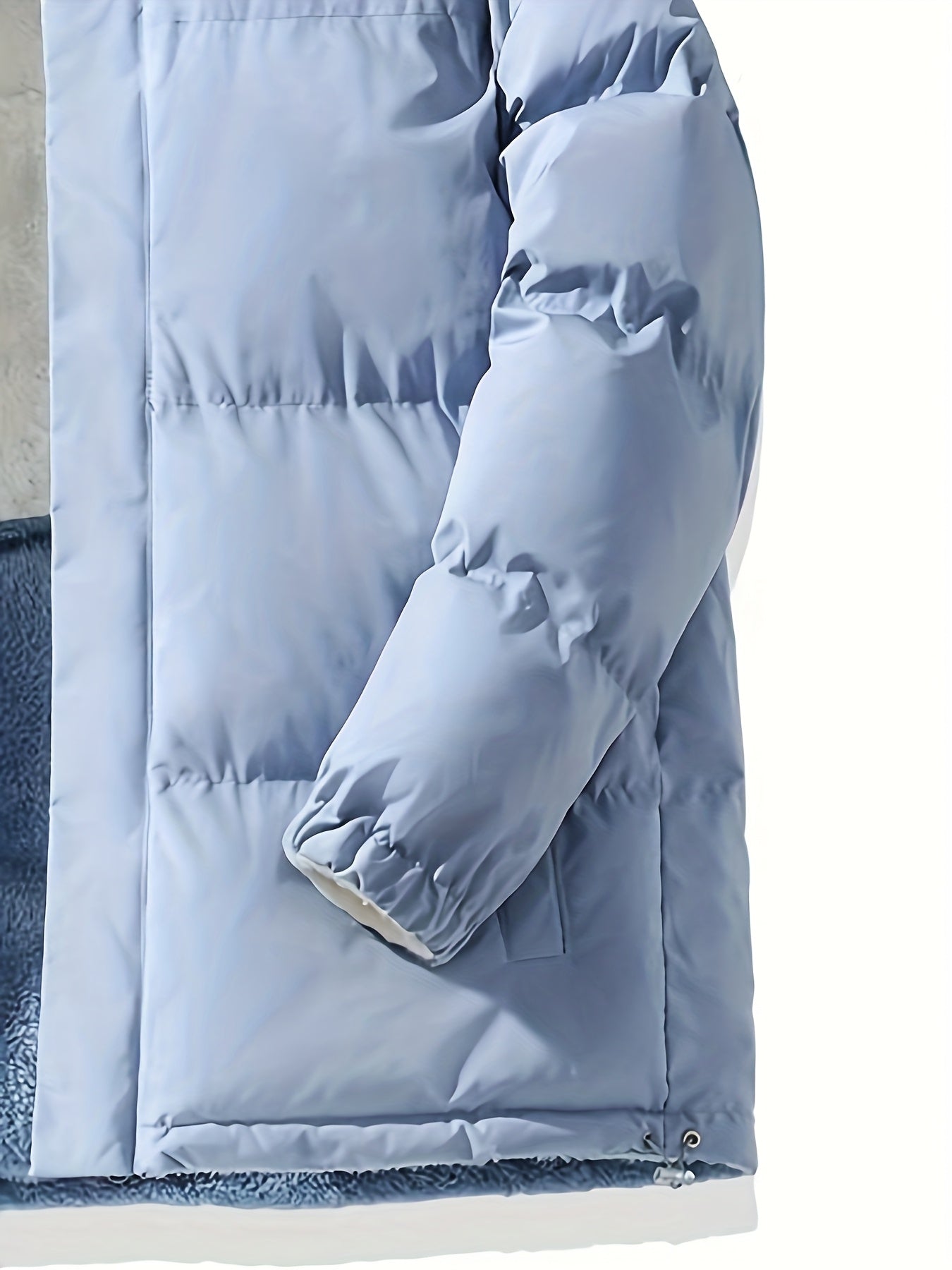 Men'S Double-Sided Fleece-Lined Thickened Jacket - Casual Stand Collar with Letter Print, Regular Fit, Pockets, Polyester Fill, Versatile for Fall/Winter, Winter Jacket