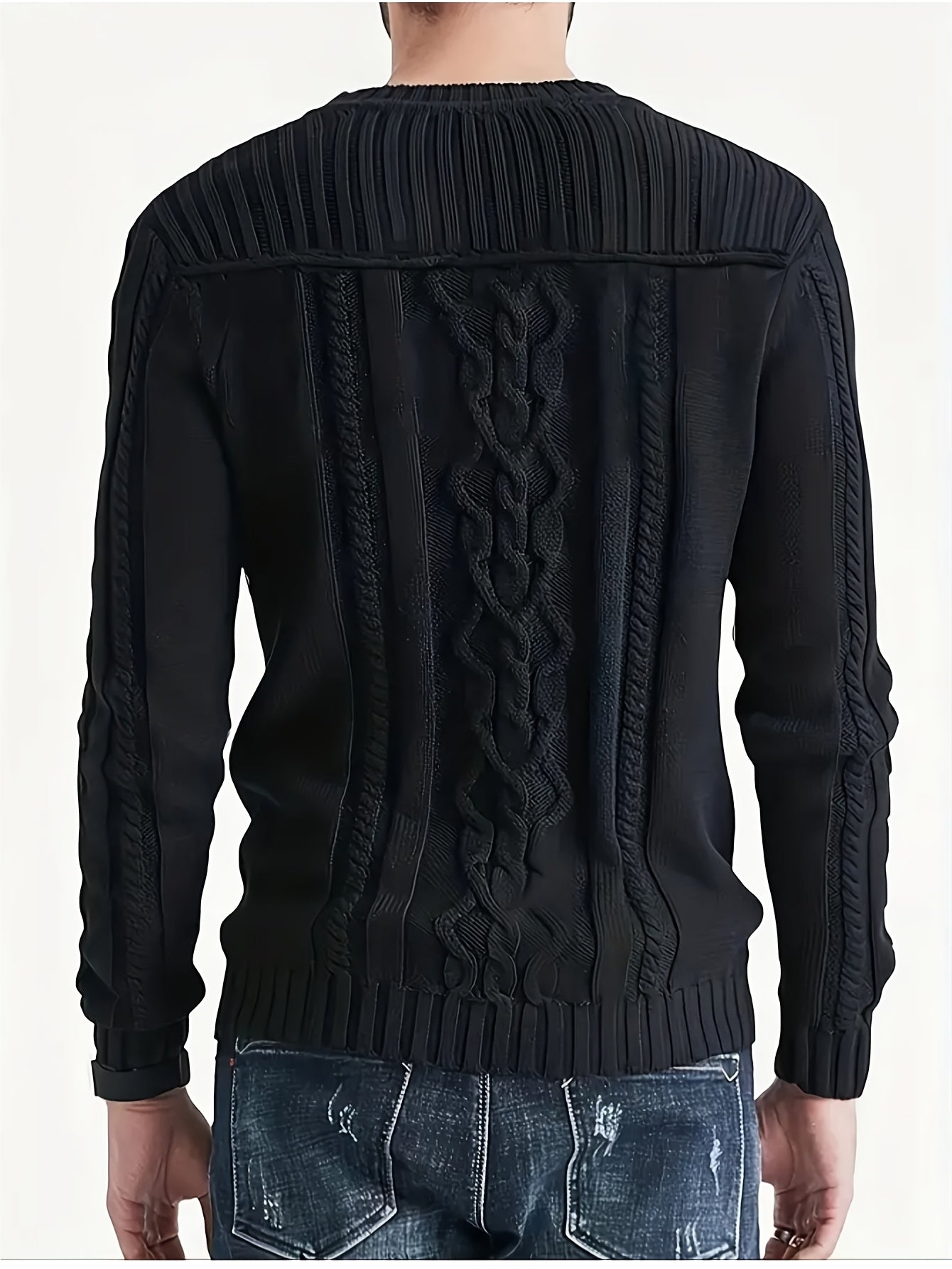 Men'S Knitted Twisted Texture Sweater, Stylish Casual Pullover for Autumn And Winter