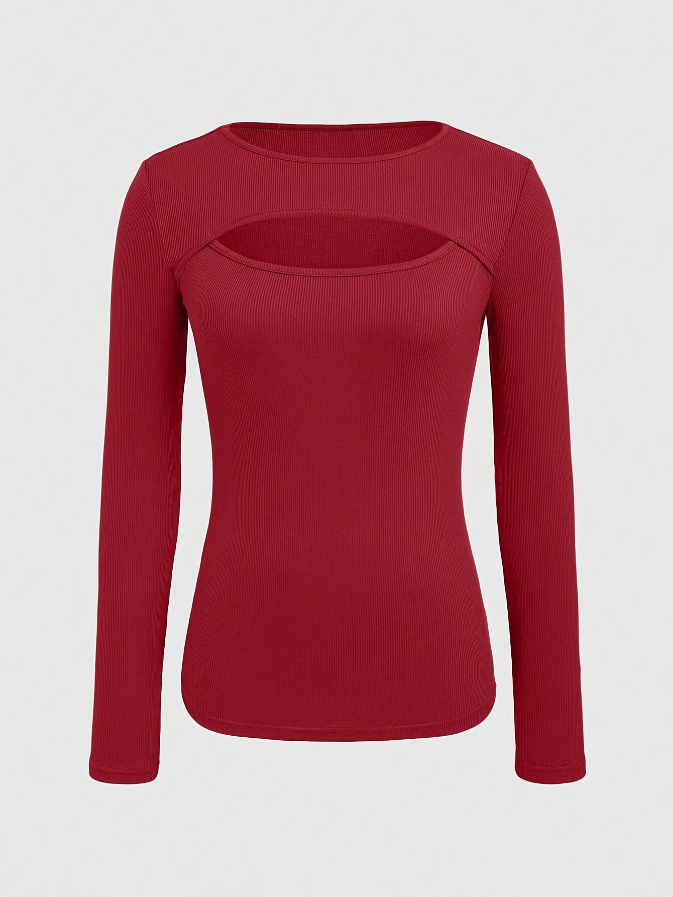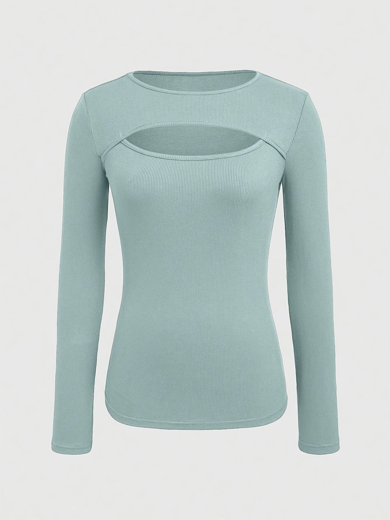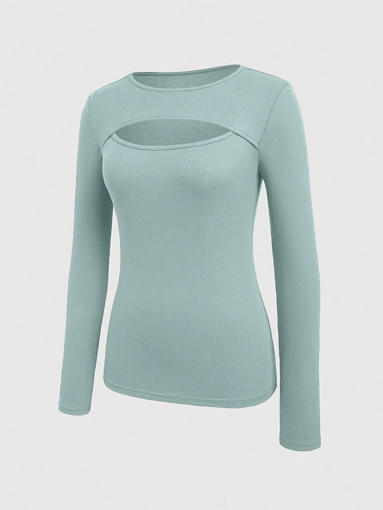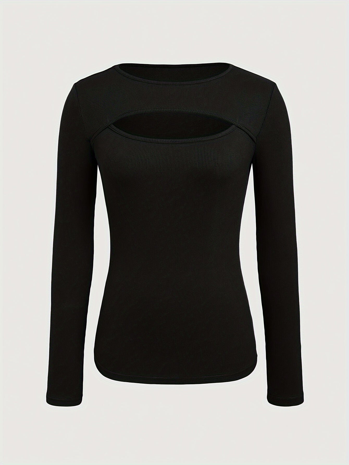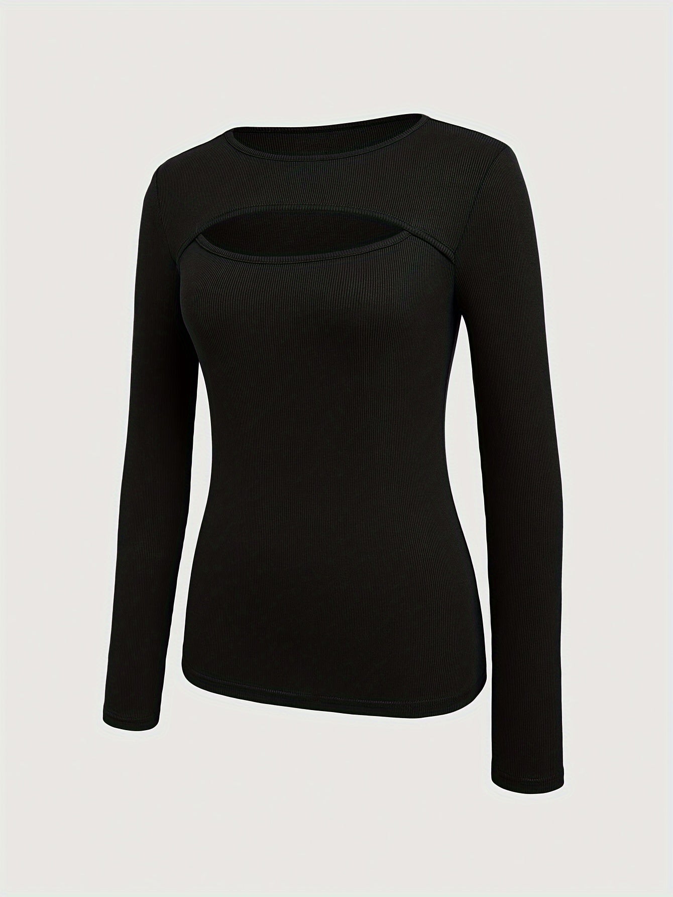 1 հատ Essence կանացի էլեգանտ, կողավոր երկար թևքով մարզաշապիկ, պոլիեսթերի և սպանդեքսի խառնուրդ, խոռոչավոր դետալներով, միագույն, կլոր վզնոցով, սովորական երկարությամբ, տրիկոտաժե կտոր - աշուն/ձմեռ հավաքածու