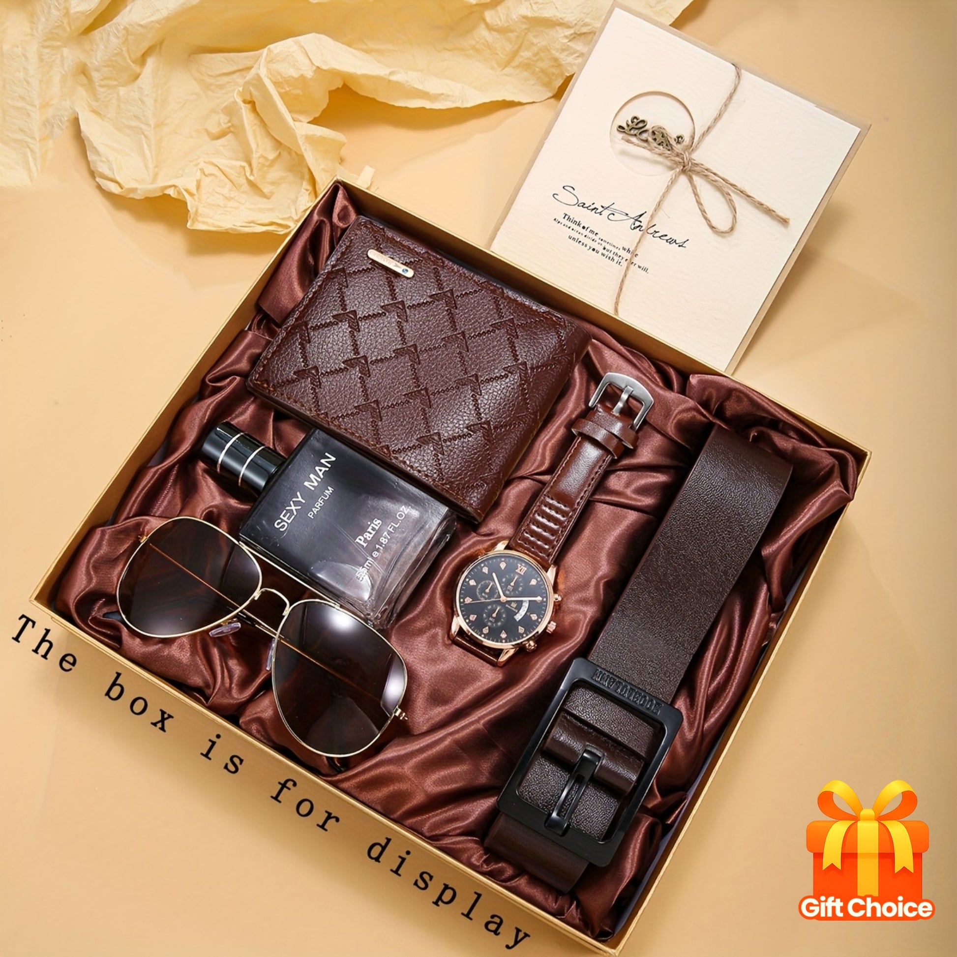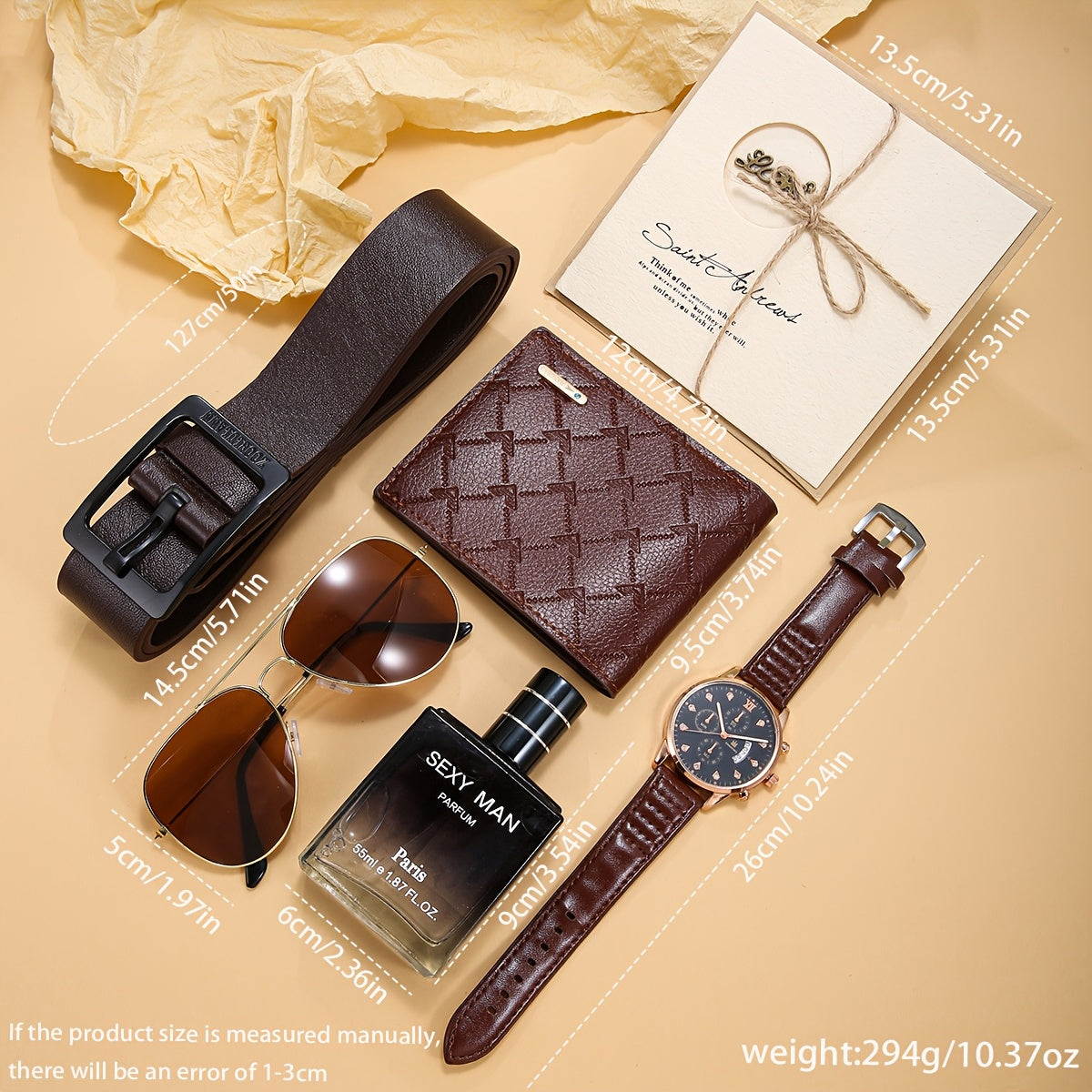 6 հատ տղամարդու գործնական ոճի դրամապանակ-ժամացույցի ժապավեն + երկարակյաց թարմ բույրով օծանելիքի բաժակներ և շնորհավորական բացիկների նվերների հավաքածու՝ կատարյալ նվեր նրա համար տարեդարձի կամ ծննդյան օրվա առթիվ