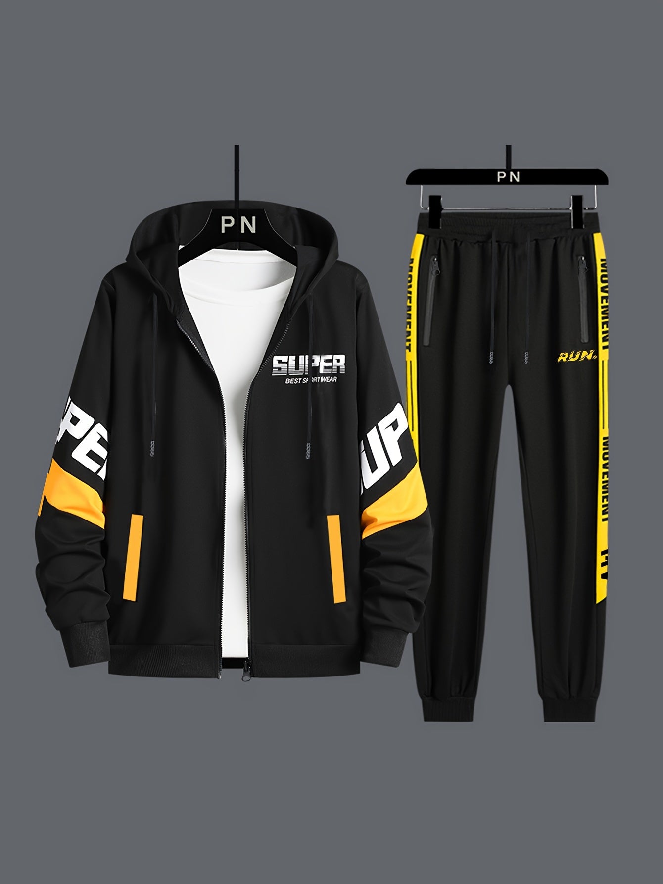 Դասական տղամարդու մարզական 2 հատանոց մարզահագուստի հավաքածու՝ լիարժեք կայծակաճարմանդով, երկար թևքերով վերնաշապիկով և վազքի տաբատով, մարզասրահի, մարզումների և վազքի համար